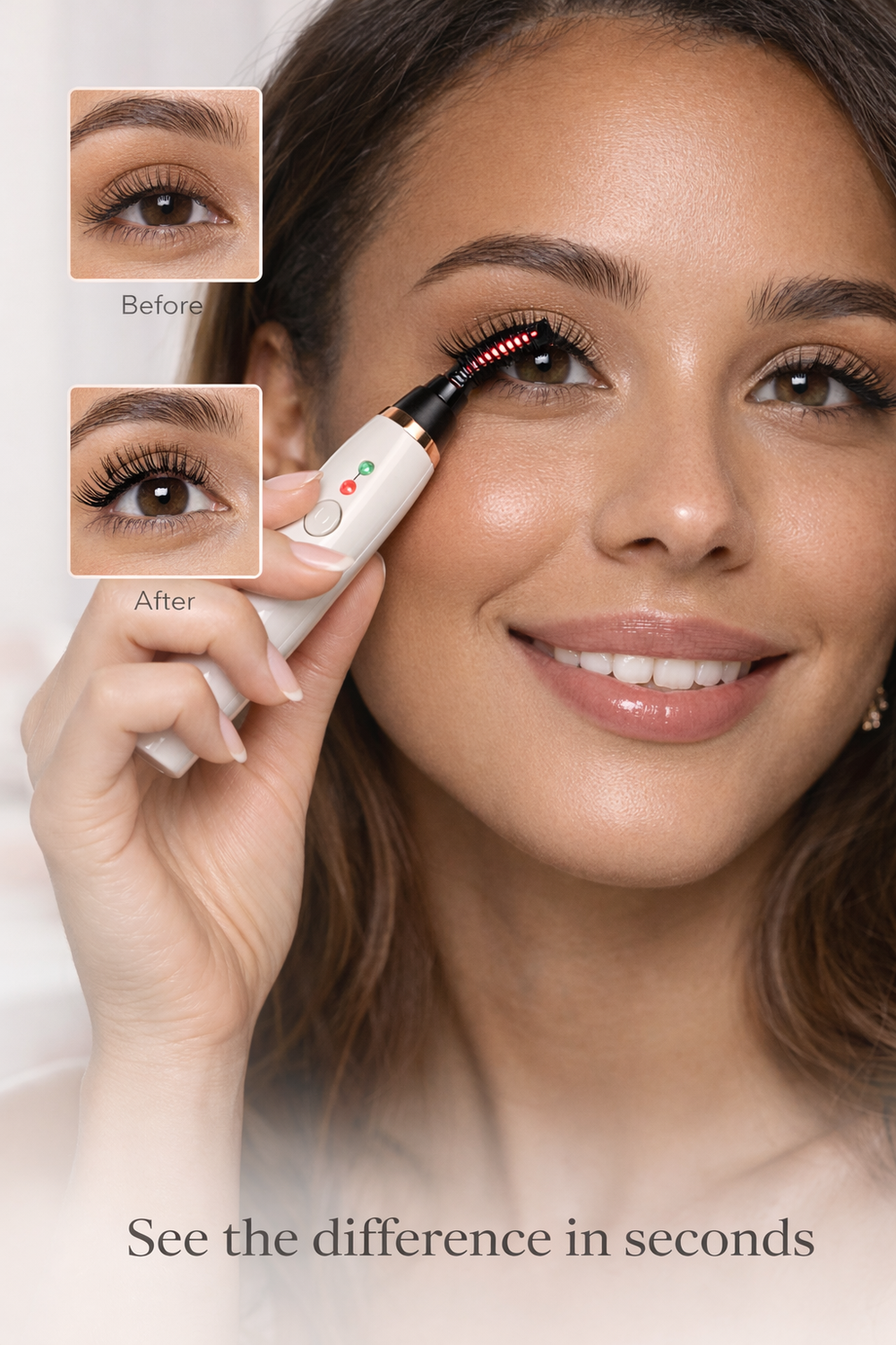 The heated eyelash curler that gives you a natural, long-lasting curl in seconds — no mascara needed.